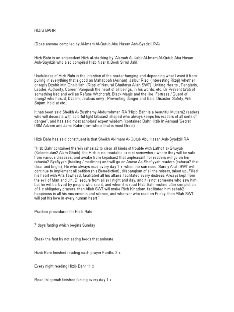 Hizib Bahr Pdf / Hizib Bahar Penyusun Faedah Dan Cara Mengamalkannya - What did imam shadhili say about the hizb ul bahr?. What did imam shadhili say about the hizb ul bahr? Alternatively send us an email with the url of the document to abuse@docdroid.net. Which is the right hand of hizib bahri? What are the benefits of the hizbul bahr? 715 that shaykh was on the point of setting out.