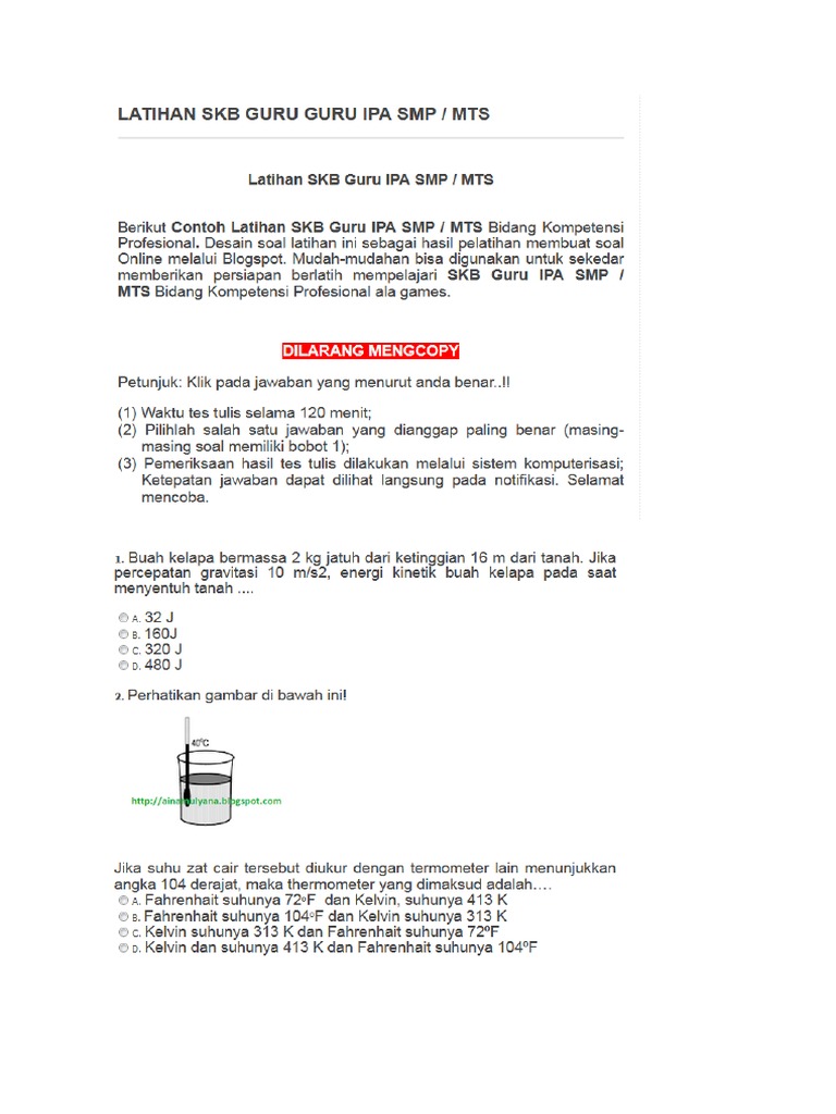 Bocoran skb cpns guru ipa smp/mts terbaru 2020 persiapan skb cpns 2019 sukses cpns 2019 , lolos anda ingin kisi kisi skb guru ipa guru smp? Contoh soal skb tenaga pendidik dan guru. Pada video ini membahas soal fisika sesuai fr skb cpns formasi guru ipa smp, yakni materi suhu dan kalor, dengan. Ilmu ini meliputi ilmu fisika , ilmu biologi , ilmu kimia dan sebagainya. Anda bisa belajar soal skb cpns 2019 guru ipa di bimbel.